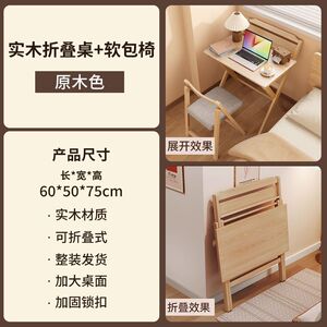 实木折叠书桌+软包椅-原木色