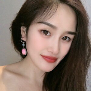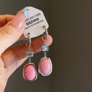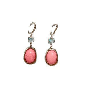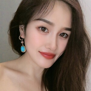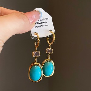 中古风vintage方糖彩宝松石长耳环电镀18K真金复古简约高级感耳饰