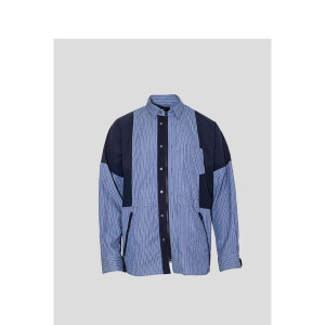 潮牌高端解构拼接条纹上衣男夏季美式高街设计感小众简约长袖上衣