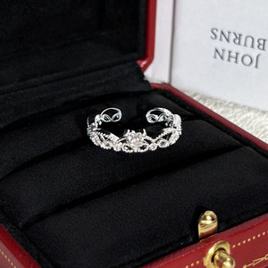碎钻蕾丝韩系精致闪钻珍珠开口戒指女小众蝴蝶结皇冠百搭时尚指环