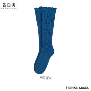 袜子女秋冬镂空爱心羊毛袜小腿袜子日系重工粗针长筒袜保暖堆堆袜