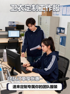 三条杠潮牌连帽卫衣定制印字logo男女通用团体工作服秋冬班服帽衫