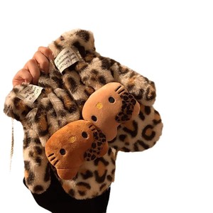 豹纹凯特猫手套围巾新款冬季防风加厚保暖围脖毛绒挂脖全指手套女