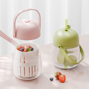 便携沙拉果蔬杯自带叉子内置冰盒外带可沥水沙拉酸奶杯早餐杯