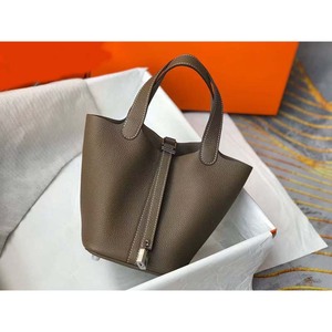 现货高品质H家荔枝纹女包TC牛皮picotin菜篮子2025新款手提水桶包