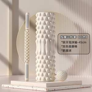 奶咖白【45cm狼牙款泡沫轴+波点款按摩棒+筋膜球】
