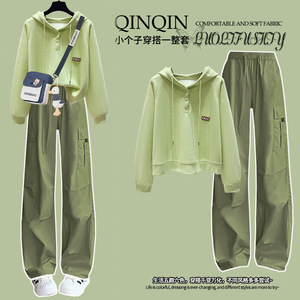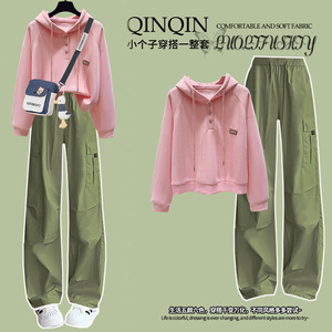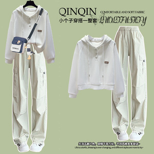 2025春秋新款初中学生套装少女大童连帽卫衣+直筒工装裤两件套潮