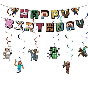 Minecraft 子供の誕生日パーティーの装飾ピクセルバトル Minecraft ゲームケーキインサートバルーンデコレーション