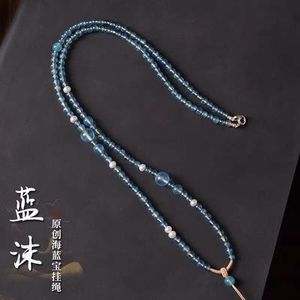 海蓝宝珠链珍珠手工编织吊坠挂绳玉坠玉佩翡翠挂件项链绳子毛衣链
