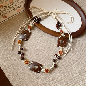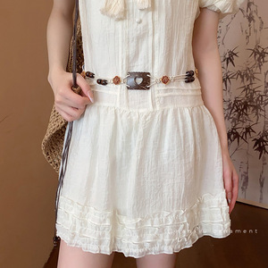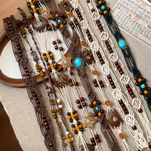 木珠串珠打结蜡绳腰链波西米亚复古风个性腰带简约时尚气质腰饰女