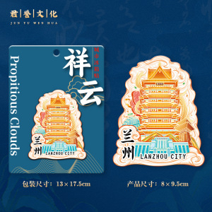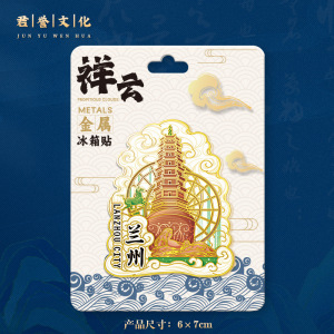 甘肃兰州白塔木质文创立体旅游纪念品地标建筑金属创意城市冰箱贴