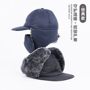 跨境冬季雷锋帽男户外骑车防风中老年爸爸保暖加绒厚护耳跨境棉帽