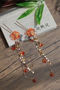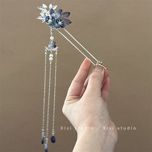 渐变琉璃花朵发簪复古气质流苏发钗新中式簪花头饰汉服旗袍配饰女