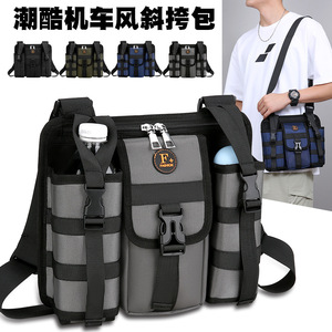 2025新款潮简约休闲单肩包男款户外运动雨伞水杯包个性潮流斜挎包
