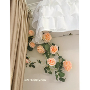 模擬バラ造花籐エアコン下水装飾遮断暖房パイプパイプ壁ワイヤー