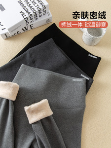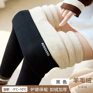 竖条螺纹纯棉外穿打底裤女秋冬新款高腰羊羔绒加绒加厚显瘦小脚裤