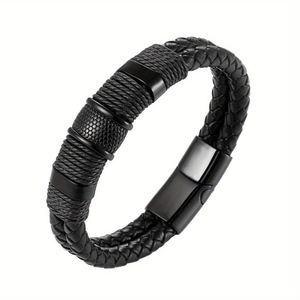 二重層編組レザーリストバンドエレガントなメンズレザーリストバンド