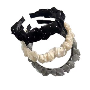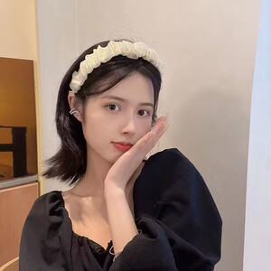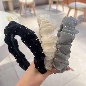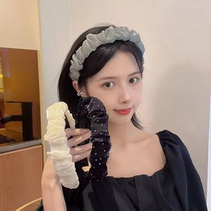 高级感碎钻网纱褶皱宽边发箍气质防滑带齿高颅顶头箍压发圈发卡女