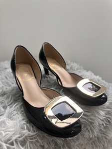 2025新款金属方扣高跟中空漆皮细跟单鞋中式风复古女鞋时尚百搭