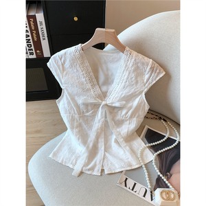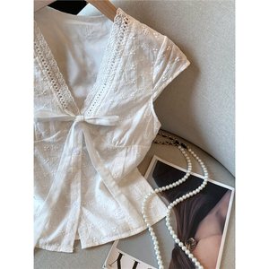 双层/原版绣花布+内里法式蕾丝刺绣镂空白色女夏飞飞袖气质上衣