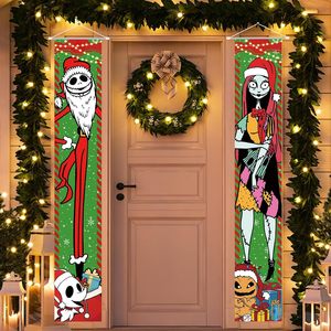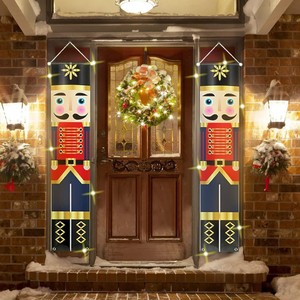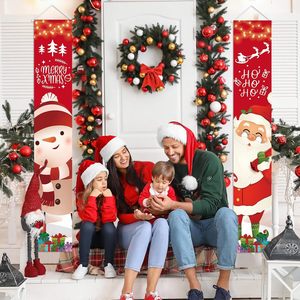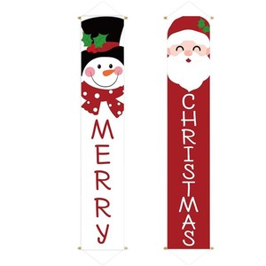 亚马逊热卖红色圣诞老人对联快乐节日门帘雪人装饰门廊背景旗挂布
