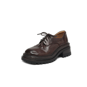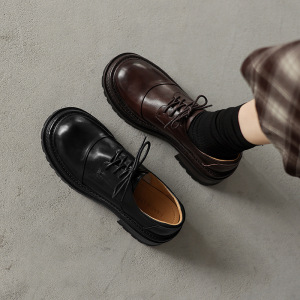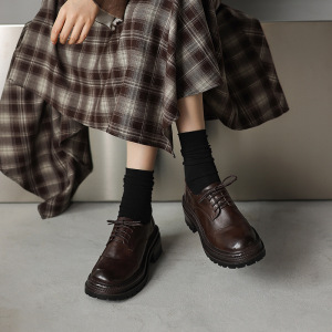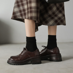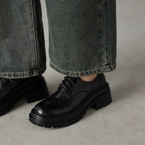 サイレントボトム JK レースアップスモールレザーシューズ ウォッシュド第一層牛革 2025 秋厚底厚底ハイヒール本革深口シングルシューズ女性用