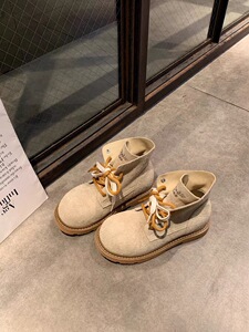 葡萄妈studiolee 增高4cm~ 时髦大圆头撞色双鞋带短筒马丁靴女鞋