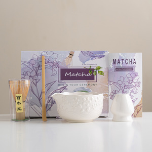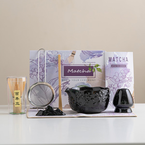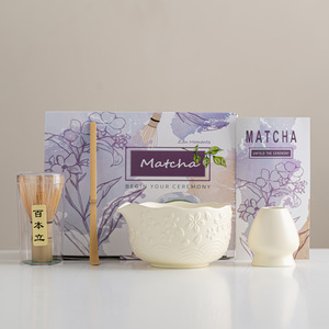 跨境樱花粉日式抹茶茶具套装7件套茶筅抹茶碗茶筅立百本立礼盒装
