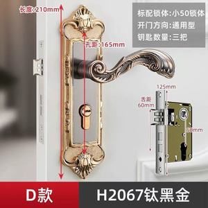 耐奢室内门锁家用静音实木门卧室房门锁钛金色机械门锁通用型锁具
