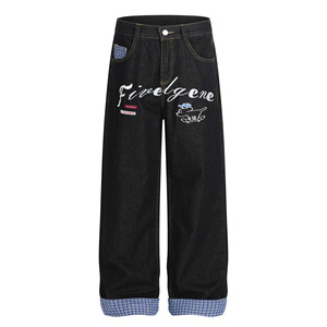 Fudge Pink 25秋季新品美式刺绣拼接洗水牛仔长裤