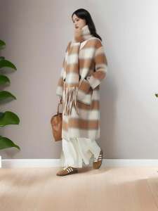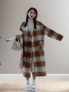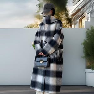 格子毛呢大衣女2025秋冬新款韩版宽松加厚显瘦女双面羊绒加厚保暖