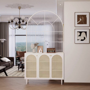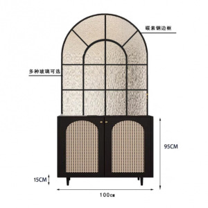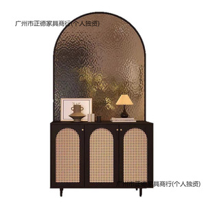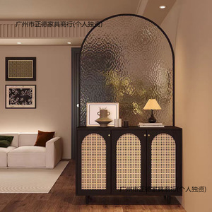 中古风进门玄关柜入户鞋柜屏风藤编复古储物柜客厅玻璃隔断柜