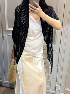 自制镂空针织披肩三角巾女夏季薄披肩麻感罩衫防晒空调衫冰丝披肩