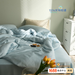 北欧ライト高級100Sテンセル4点セット夏裸寝両面アイスシルクシーツ掛け布団カバーシーツ寝具