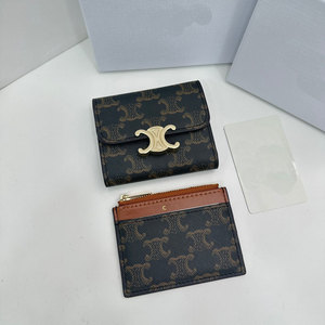 lisa同款凯旋门三折钱包女拆卸式二合一卡包经典老花拉链零钱包