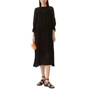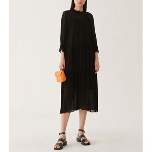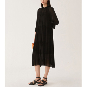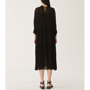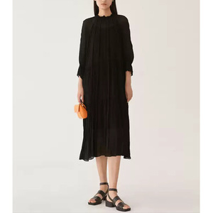 【AM定单】夏季新款2025黑色优雅七分袖半高领中长款飘逸连衣裙女