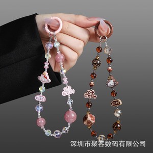 手机挂链新款合金手机壳挂绳高级感手工diy串珠手机链ccd钥匙扣短
