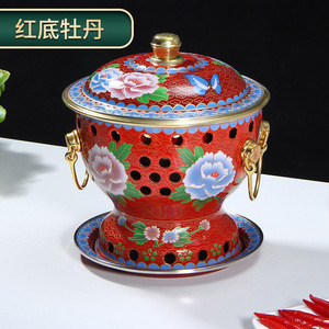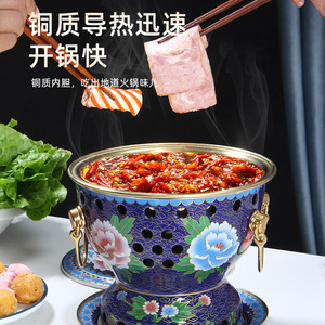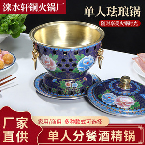 景泰蓝单人珐琅锅小火锅分餐酒精锅家用单人油火锅炉纯铜锅