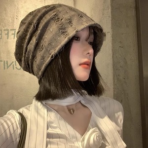 美式复古破洞做旧废土风冷帽女秋冬季宽松百搭堆堆帽显脸小帽子潮