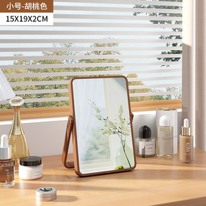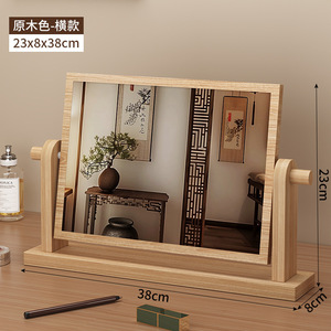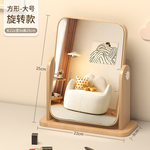 实木化妆镜家用台式桌面可旋转梳妆镜女卧室简约大号复古方形镜子