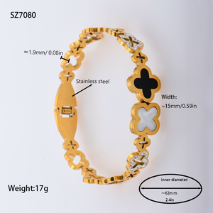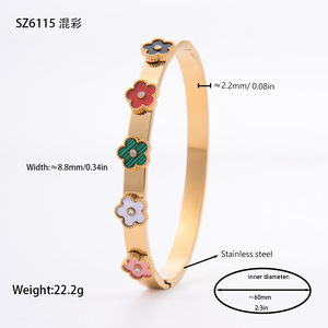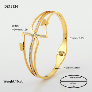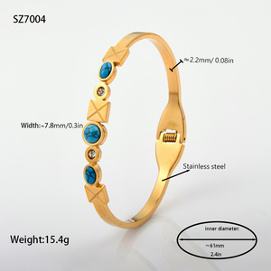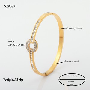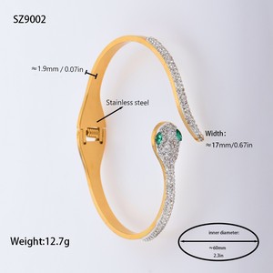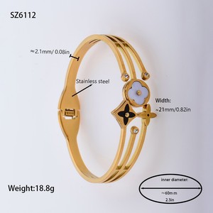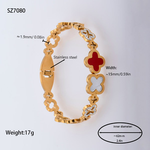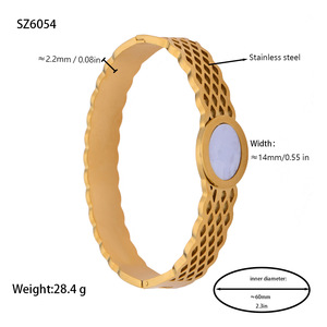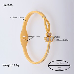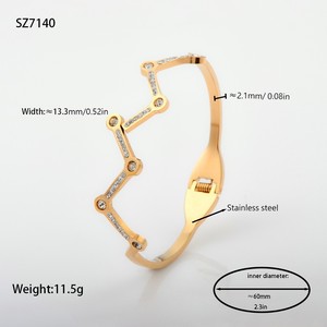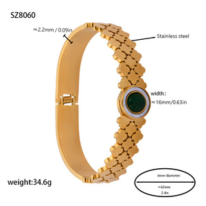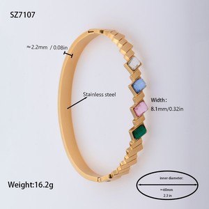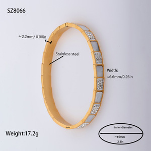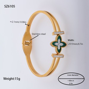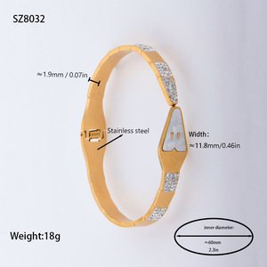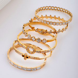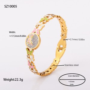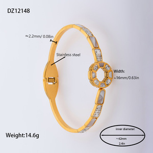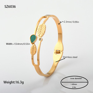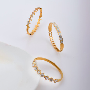 佳泰珠宝孔雀凤尾镶嵌贝壳闪亮锆石钛钢手镯时髦潮人手环精致手饰