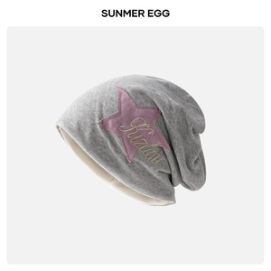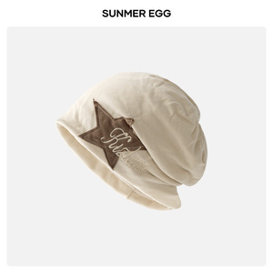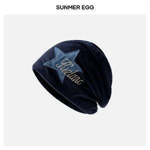 美式小众贴布卷边堆堆帽女秋冬季新款包头帽子护耳冷帽百搭月子帽