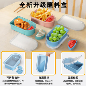 新款硅胶零食容器保鲜便携分装带盖可拆卸硅胶大容量调味盒酱料盒