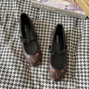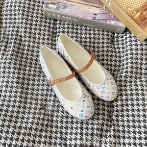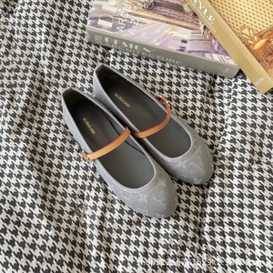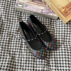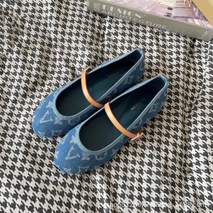 欧美风2025秋季新款驴家平底字母牛仔布圆头金属一字扣玛丽珍女鞋
