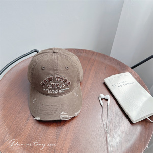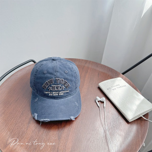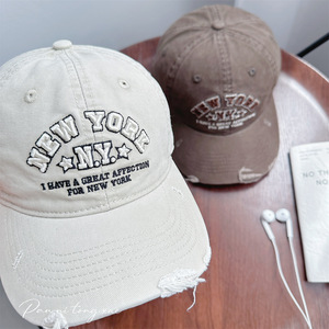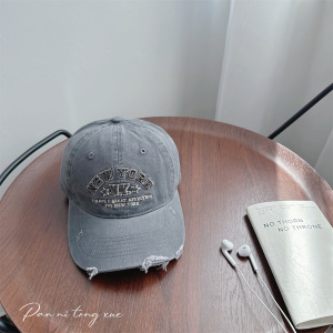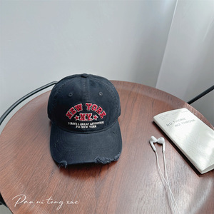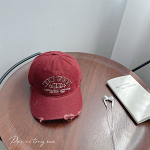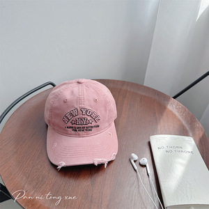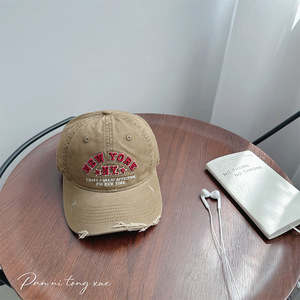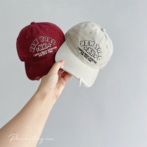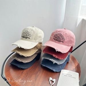 美式复古水洗破洞儿童棒球帽学生字母刺绣防晒百搭潮搭街头鸭舌帽