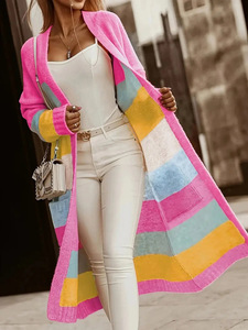 コントラストカラーレインボーストライプ2025秋冬レディースヨーロッパとアメリカのクロスボーダーセータージャケットカジュアルルーズロングニットカーディガン