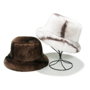 跨境亚马逊冬季毛绒帽时尚走秀皮草盆帽加厚护耳毛茸茸渔夫帽女