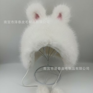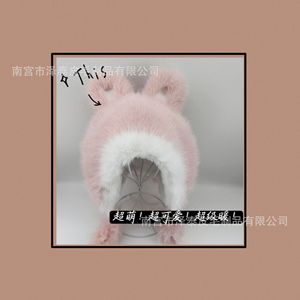 新款毛绒兔耳加厚防寒帽可爱毛绒护耳洋气时尚冬季保暖