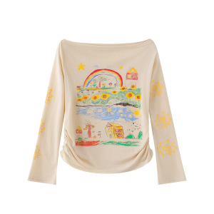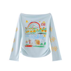 Mint Miaow 25秋新作スイートガール漫画楽しい柄長袖Tシャツ