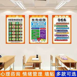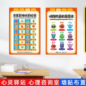 心理咨询室墙面装饰挂图工作室背景布置海报情绪感受轮文化墙贴纸